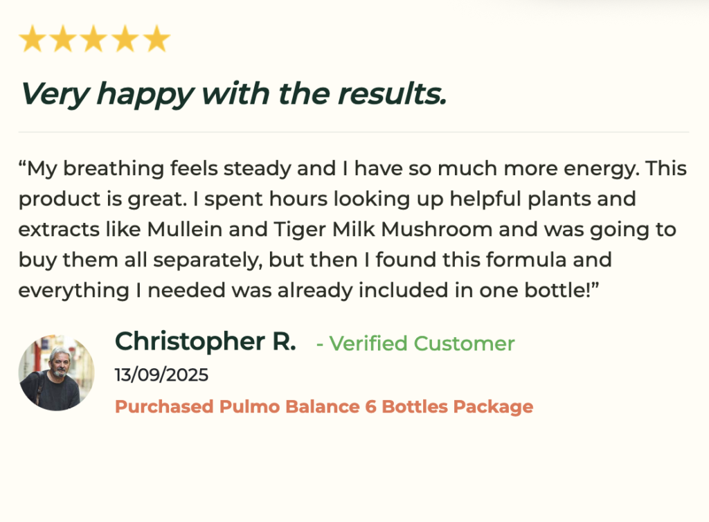 If you’re ready to stop struggling and start thriving, welcome to Pulmo Balance RESEARCH. We’ve developed a specialized Respiratory Formula designed to harmonize your airways and restore the vitality that comes only from optimal oxygen intake.